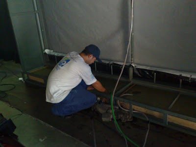 Chegamos ao teatro 10h, fomos testar a bomba... e nada. Espetáculo às 12h. &*¨%$$$#)*(&&*%$&&*+?>}^{`__)(***&!!! E agora gente??? Colocamos a Carol louca atrás de um bombeiro hidráulico, Ed tentando resolver mas sem resultado e aí chega o telefone e eu ligo e quase em prantos 'PeloamordeDeusagenteprecisadeajuda' e eles 'em 40 min estamos aí' 'isso tudo???'. Chega então Laura, uma simpatia de pessoa, tentando acalmar a gente. Anota aí pessoal de Curitiba, precisando é só chamar MOTOBOMBAS 41 3278-0030/41 9644-1221, SERVIÇO BOM E PREÇO MELHOR AINDA. Laurinha acabou ficando para o espetáculo, entendeu o 'nosso drama' e ficou pra dar uma força - fofa ela e o seu ajudante uma graça - e assim, depois de 'muito ar', 'a mangueira não pode ficar embolada', 'etc, etc, etc', começamos o espetáculo com 43 min de atraso, um monte de gente da imprensa no saguão esperando. Acendi mais 2 velas, incensos espalhados pelo espaço inteiro, terço na mão, coração aos pulos. Conectamos a mangueira da parede lá fora e o chuveiro vai funcionar hoje pela graça de Deus. Amém.